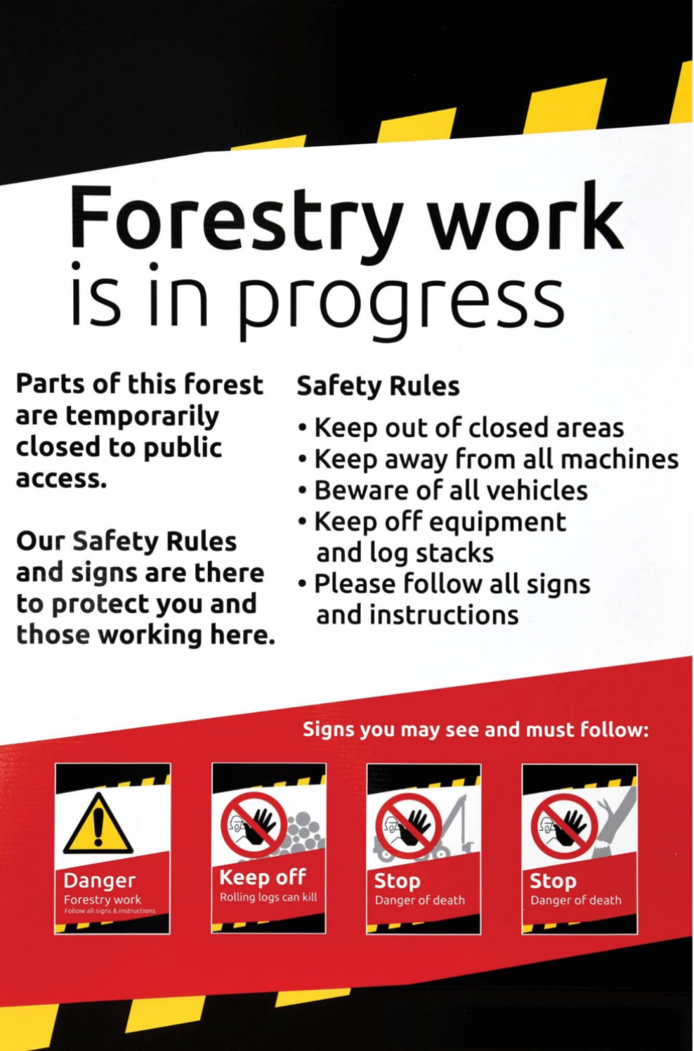 If you need to pass in the vicinity of any harvesting/extraction/haulage works, please make sure you have attracted the attention of the operator and follow their advice/instructions at all times.
