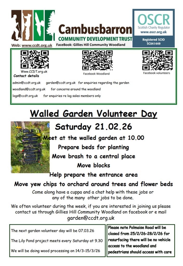 The next volunteer Day is in the Walled Garden on Saturday 21st February from 10 am.